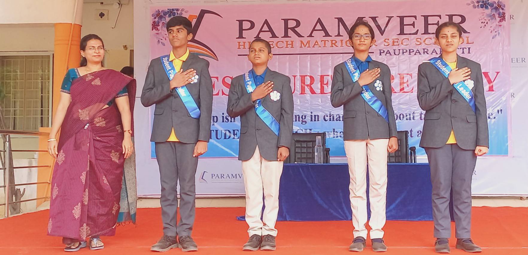 Our respected Secretary ma'am honoured the student council members by having them wear sashes. The young leaders took the oath to uphold the values of honesty, integrity, and dedication, and pledged to lead by the guidance of the Principal Ma'am. With sashes and badges pinned, they marched forward to carry the responsibilities entrusted to them with confidence and pride.